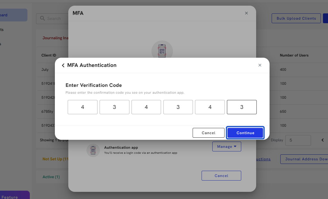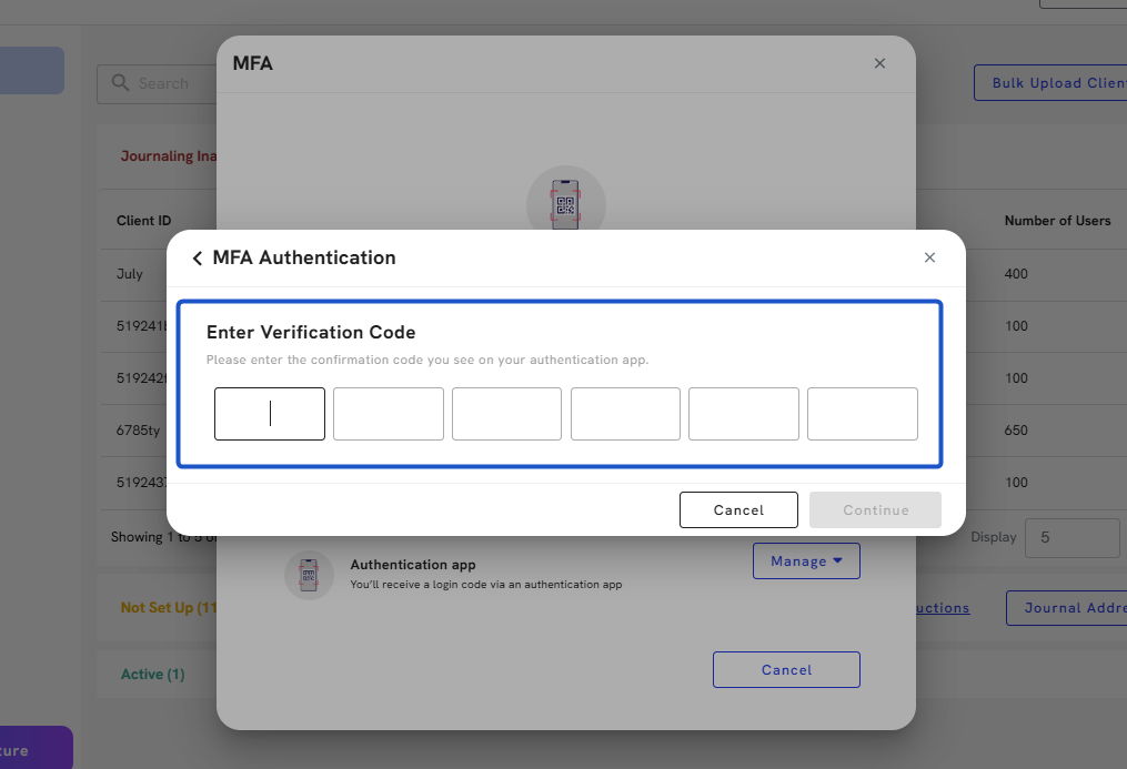 9. Enter the confirmation code you see on your authentication app.