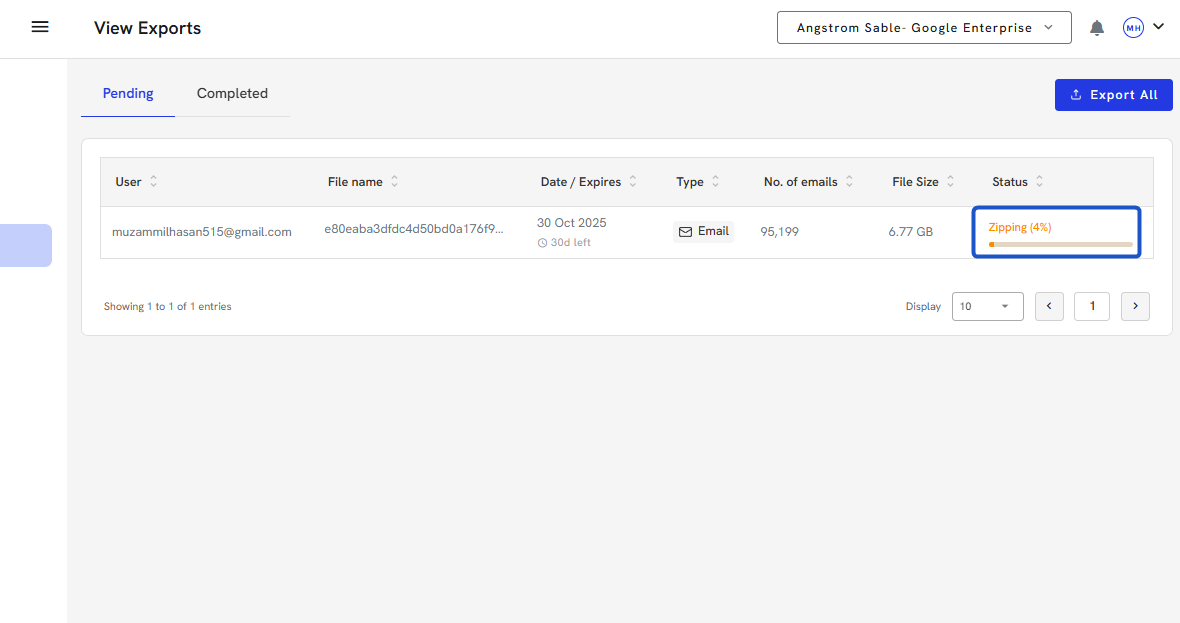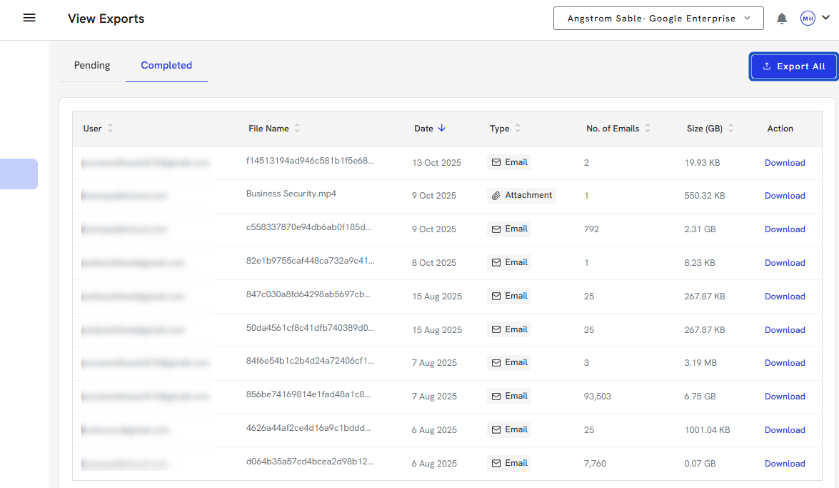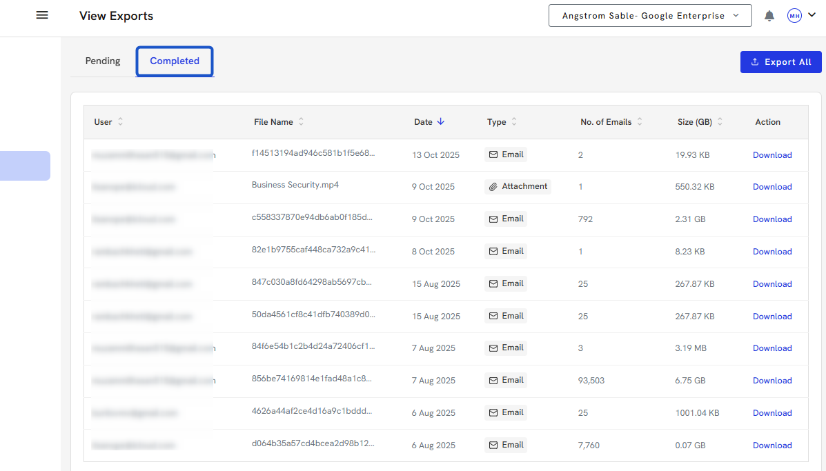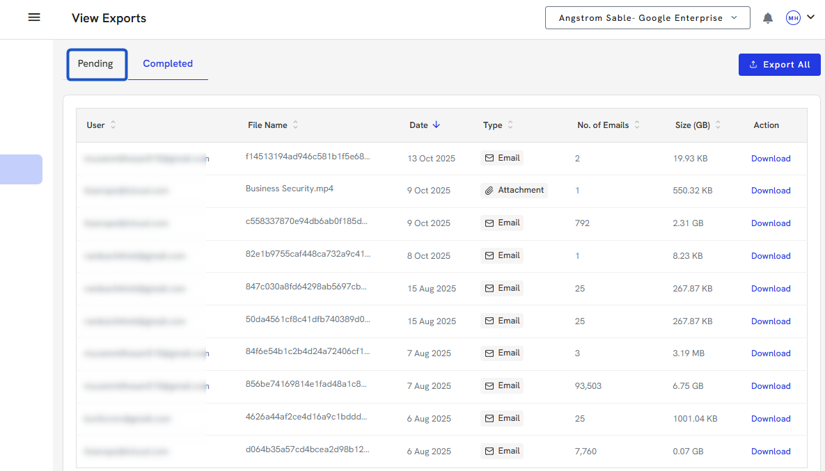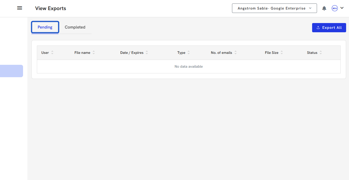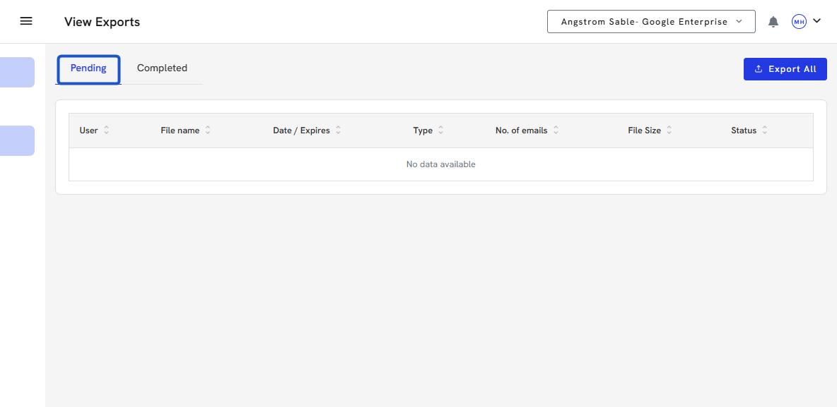 4. You can download large exports once completed in the Completed section.