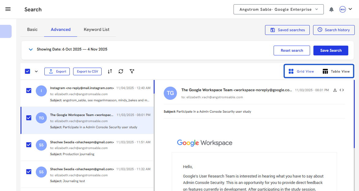17. From the View icon, you can switch between Grid View and Table View to change how your search results are displayed.