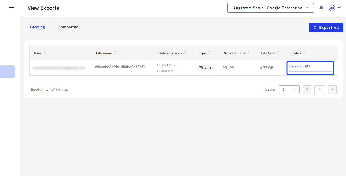 22. Your export will begin and appear on the Pending screen.
