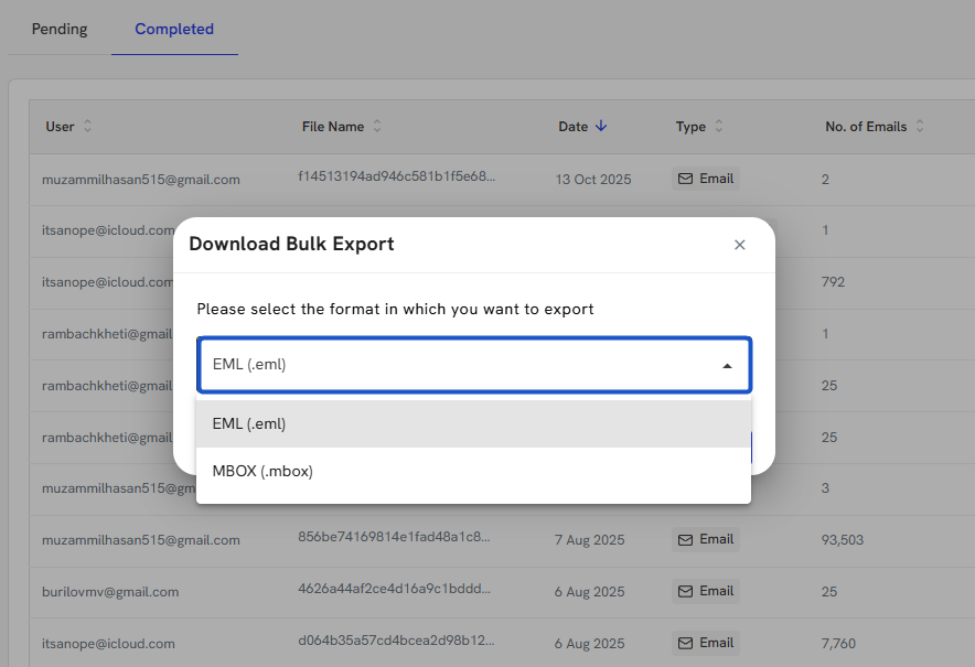 6. When exporting, you can choose .eml or .mbox file types.