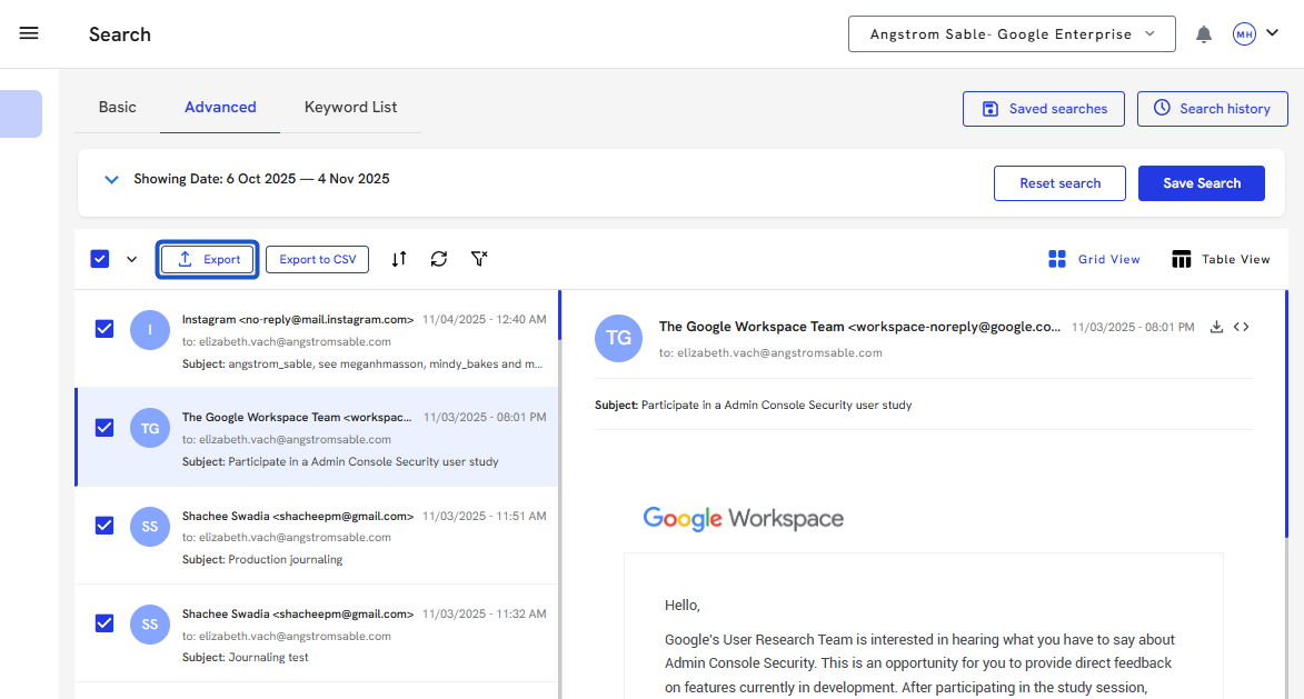 14. You can also export emails from the Search screen.