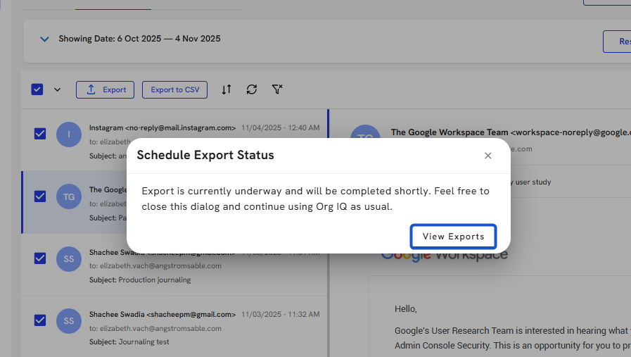 Managing and Exporting Emails from Org IQ