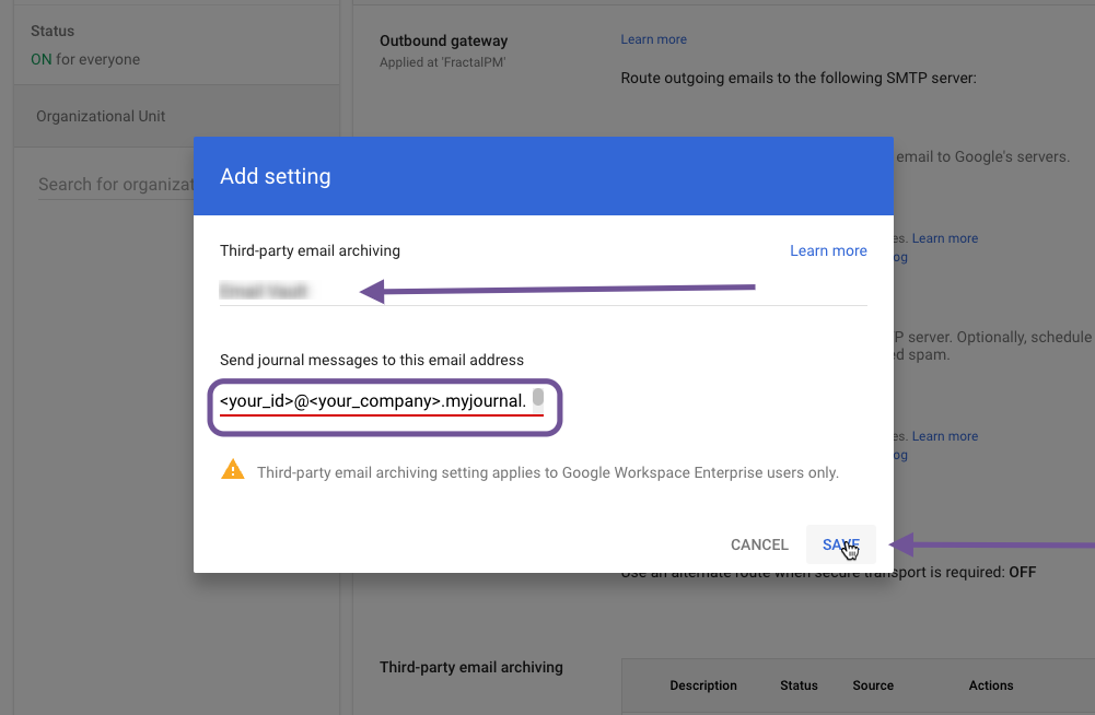 5. On the "Routing" screen, navigate to the "Third-party email archiving" section and click on "ADD ANOTHER RULE."