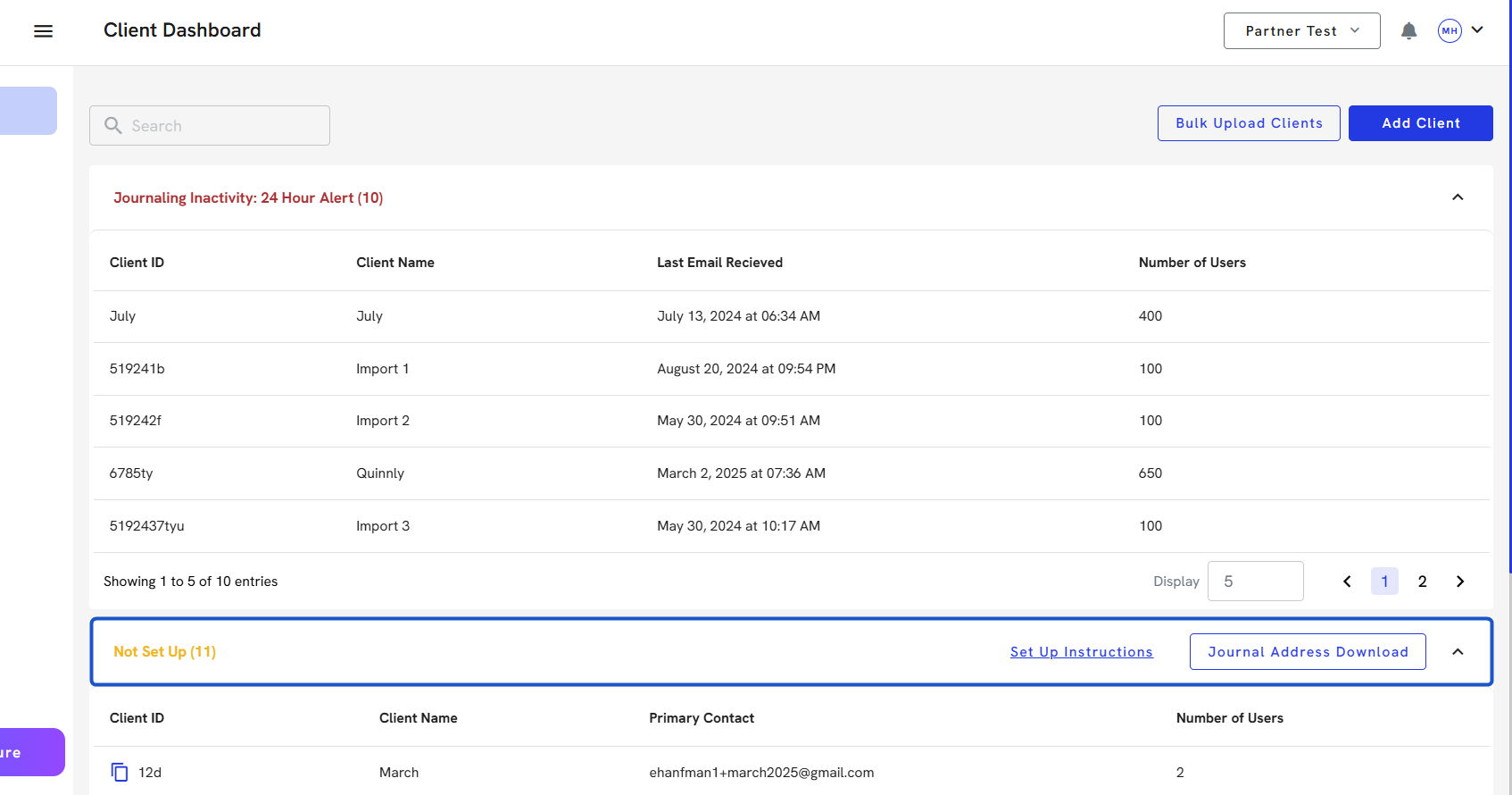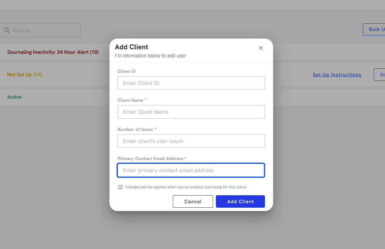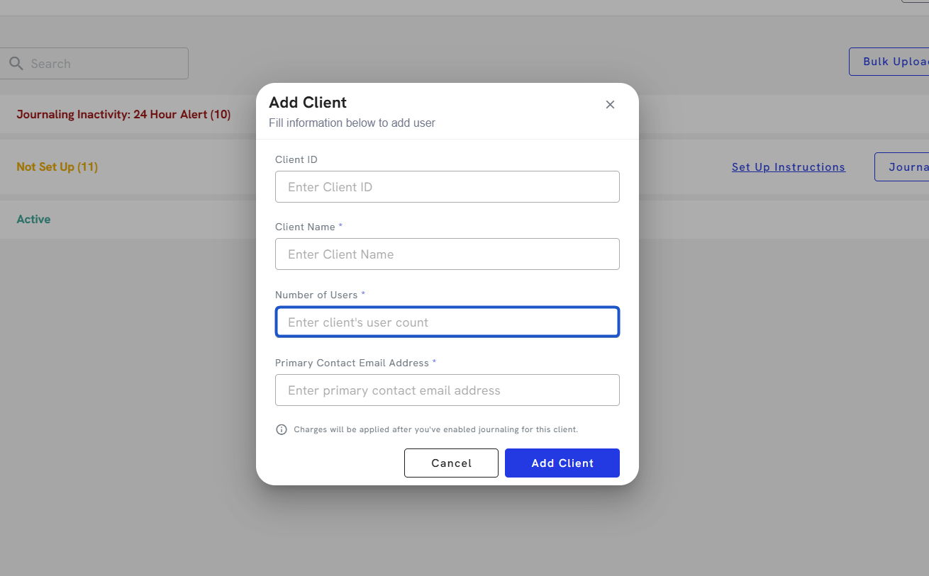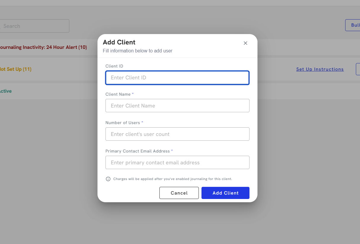 7. Until you have enabled journaling for the client, you will not be billed for their users.