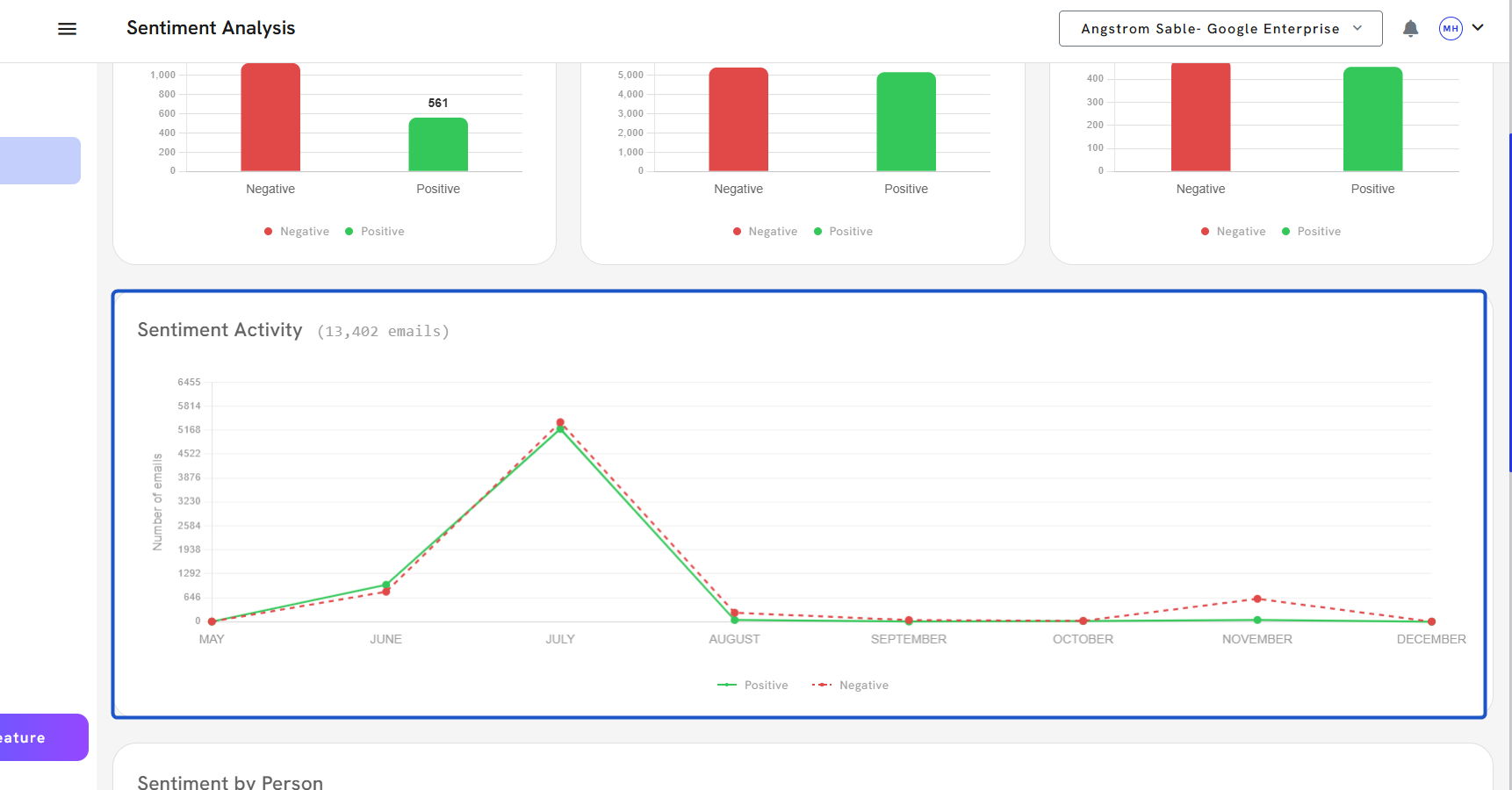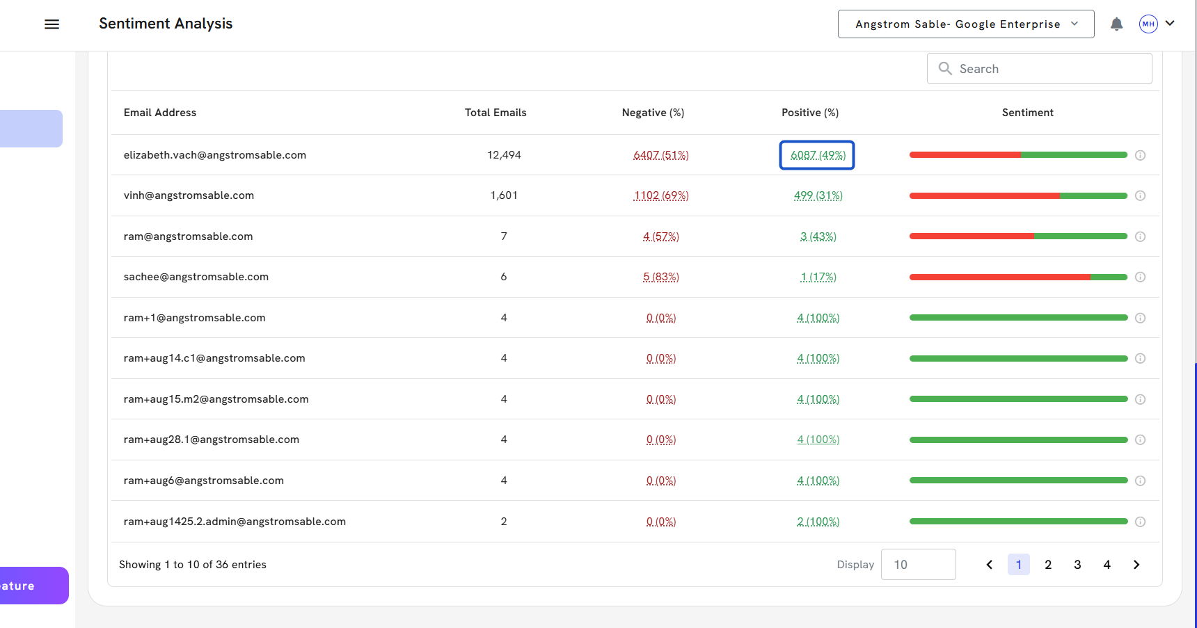 One of the most powerful features of the Sentiment Analysis dashboard is its click-to-drill functionality. This lets you jump directly into filtered email-level data from any graph.