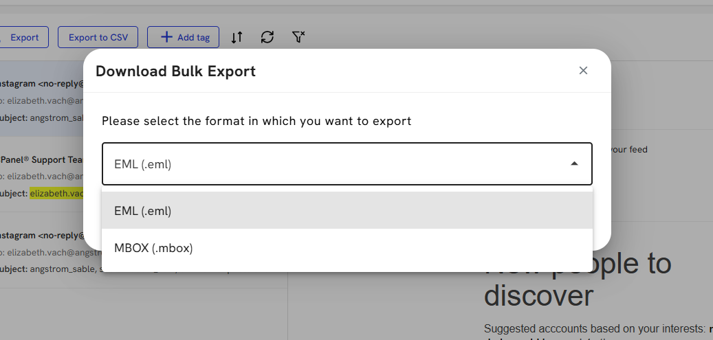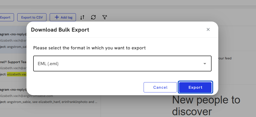 16. To export specific emails, select each checkbox.