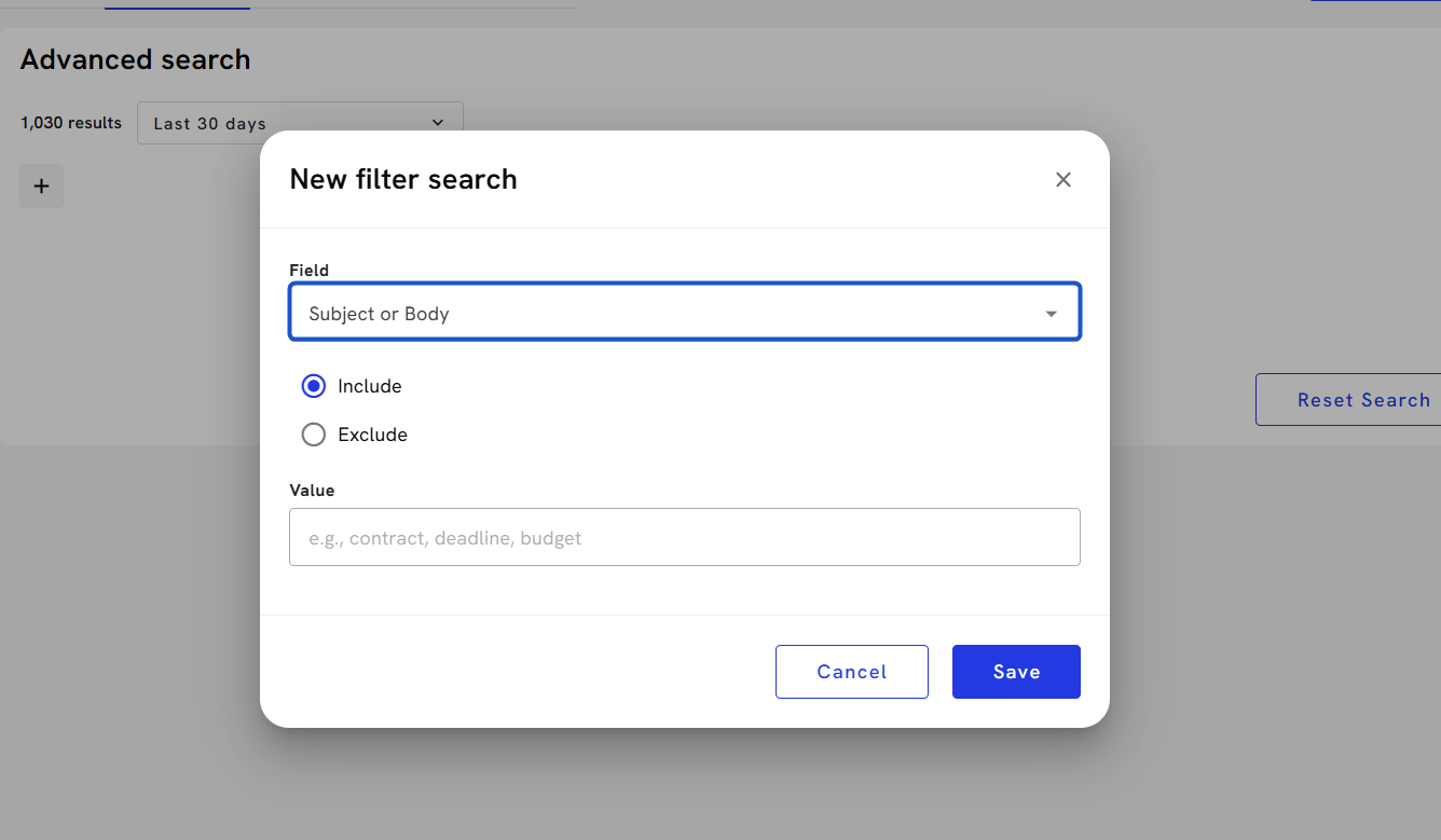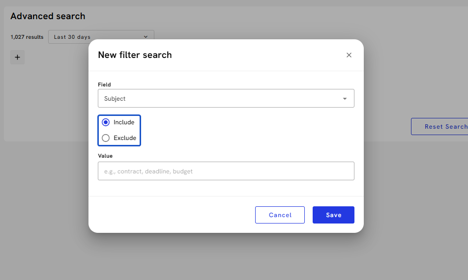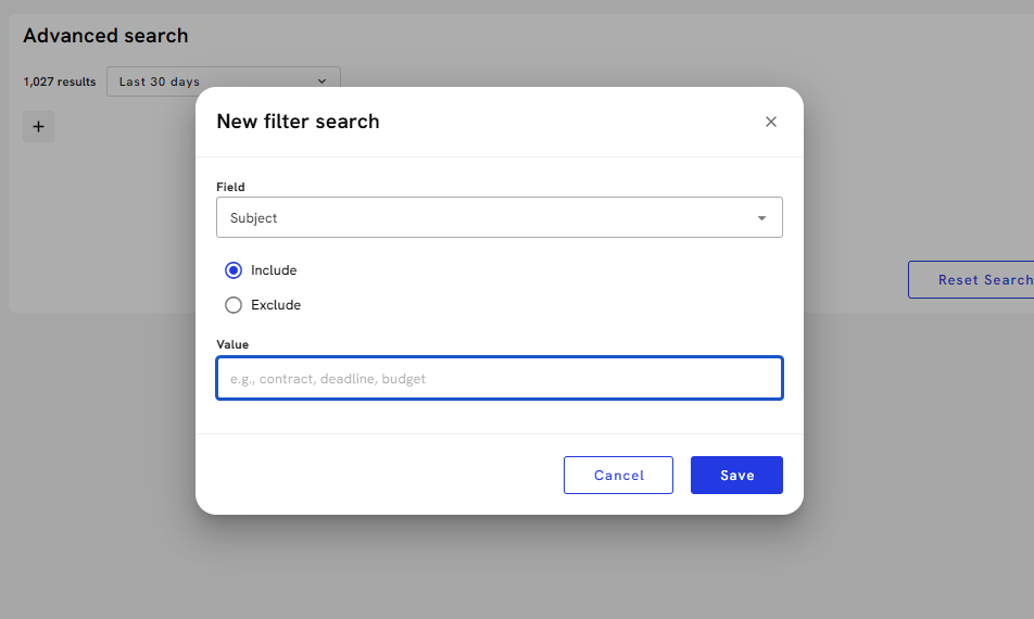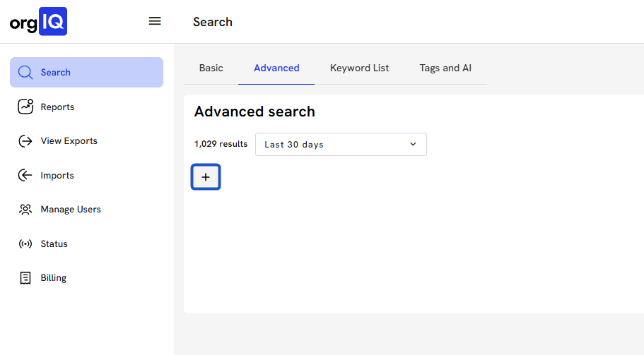 8. To add more search filters, press the "+" sign.