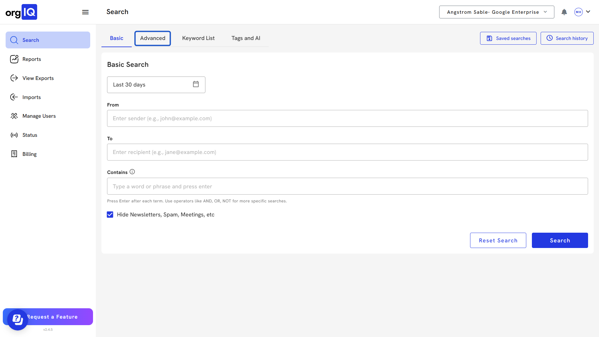 Searching Emails with Org IQ