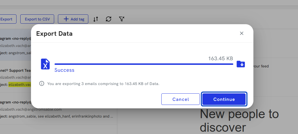 20. Once exported, click on Continue.